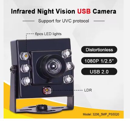 5 ميجابكسل PS5520 3.6 ملم عدسة خالية من التشوه IR850 مستشعر CMOS بالأشعة تحت الحمراء عالي الدقة بالكامل UVC Plug&Play وحدة كاميرا USB صغيرة بإضاءة خلفية